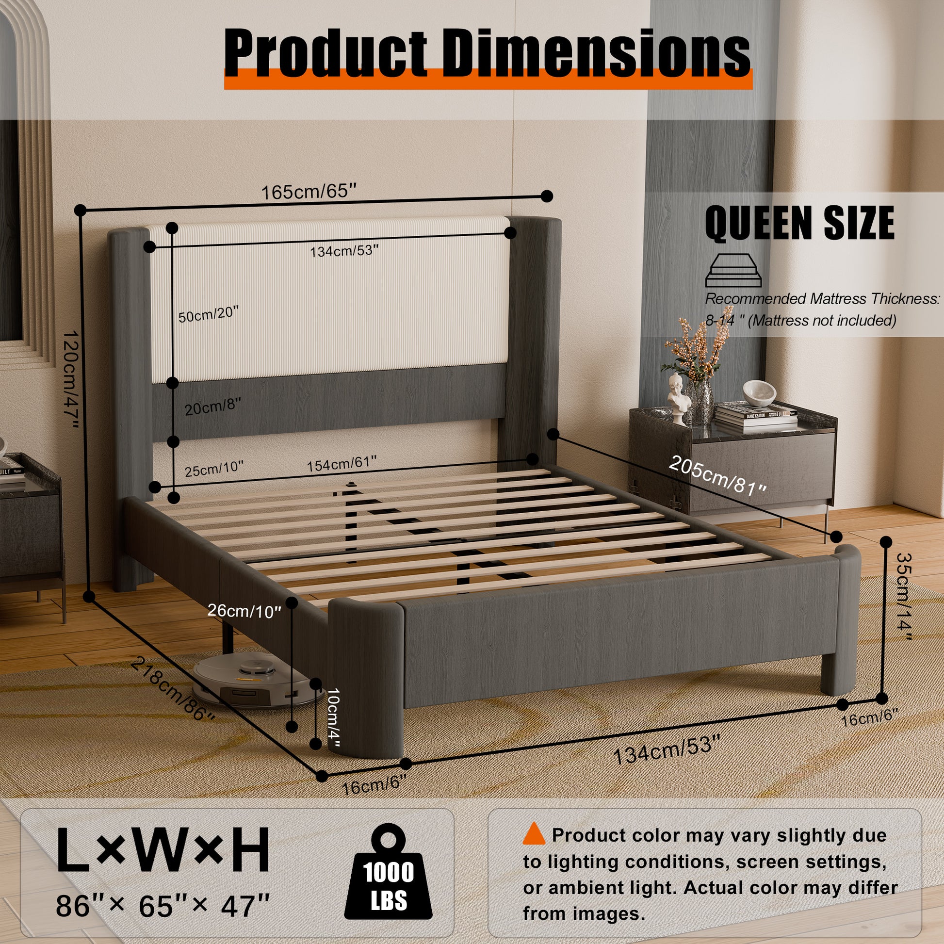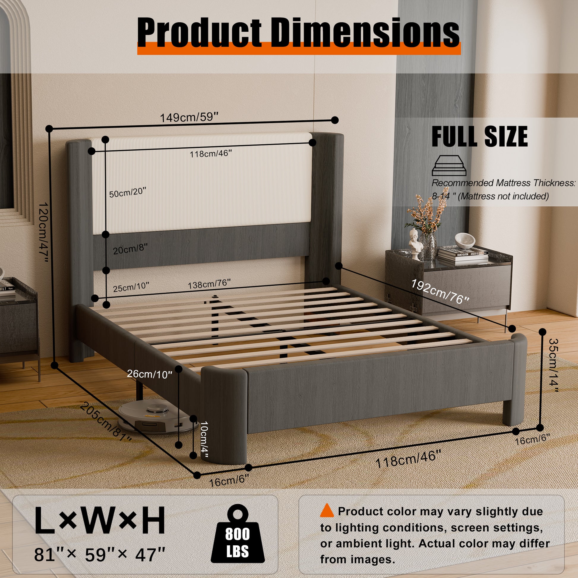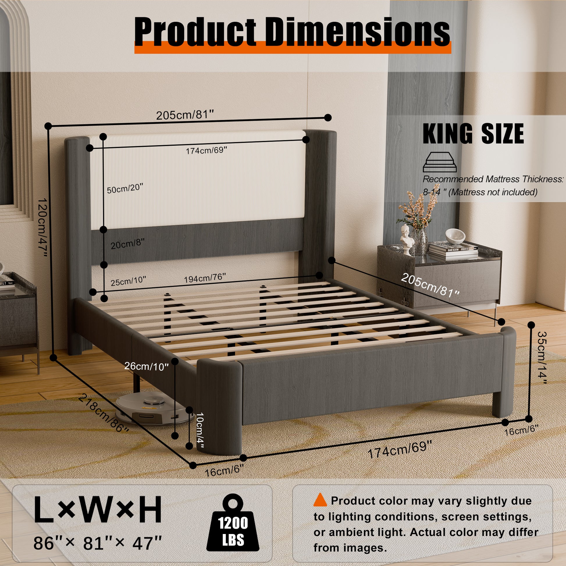 - Plush Fabric Upholstery with Protective Rounded Design: Crafted with natural oak textured faux leather fabric covering the headboard and footboard, it creates a warm and inviting bedroom atmosphere. The contemporary wingback silhouette, combined with smooth, rounded corners enhances your room's aesthetics while providing added assurance for households with children or pets.